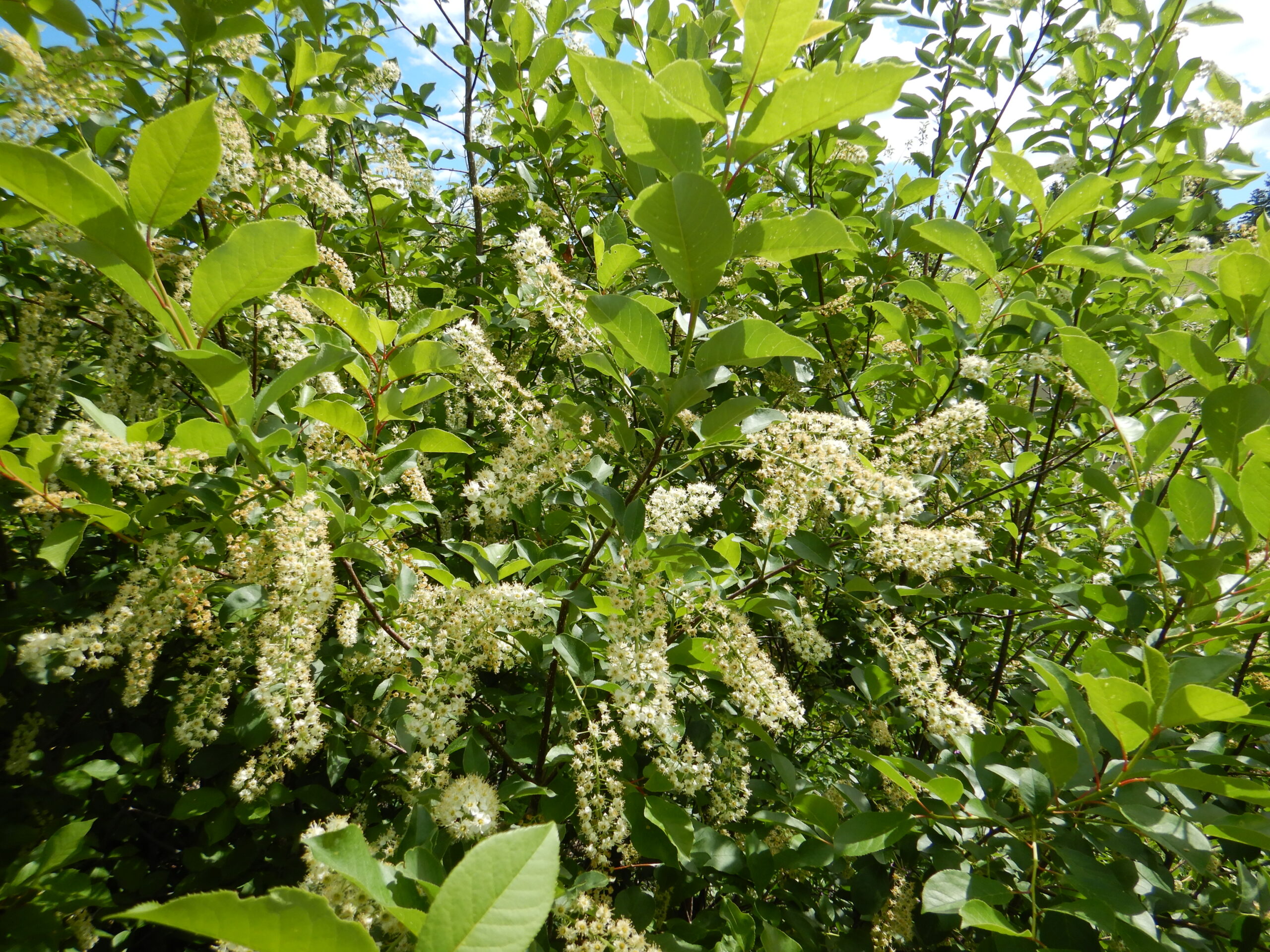 Chokecherries are of huge ecological importance being of the Prunus genus, hosting 340 species of caterpillar in the region and providing food and cover for a variety of animals. Native songbirds flock to the ripe fruit.